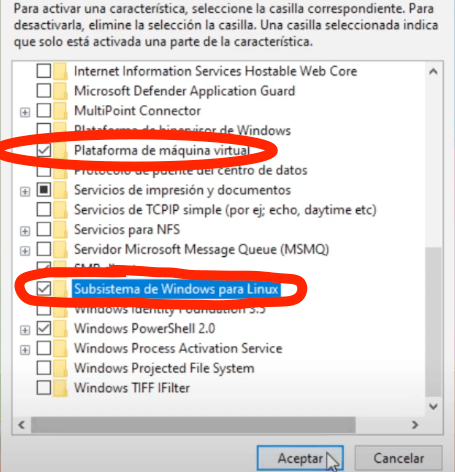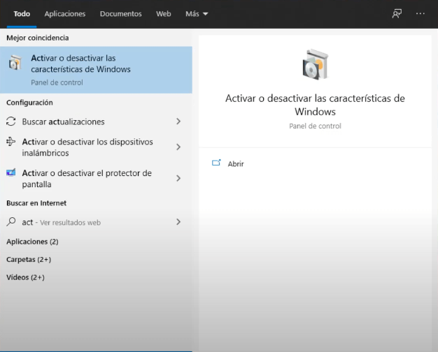 Necesitaremos activar un par de características de windows. Para ello ejecutaremos: