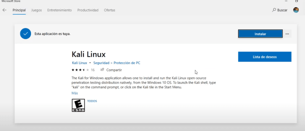 Desde la tienda de aplicación de Microsoft instalamos la distribución de Linux que queramos: